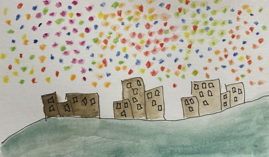 Day 10 – January 10, 2025 (Inktense pencils, pen, Posca pen, and acrylic mixing white) An unintended rendering of the LA fires