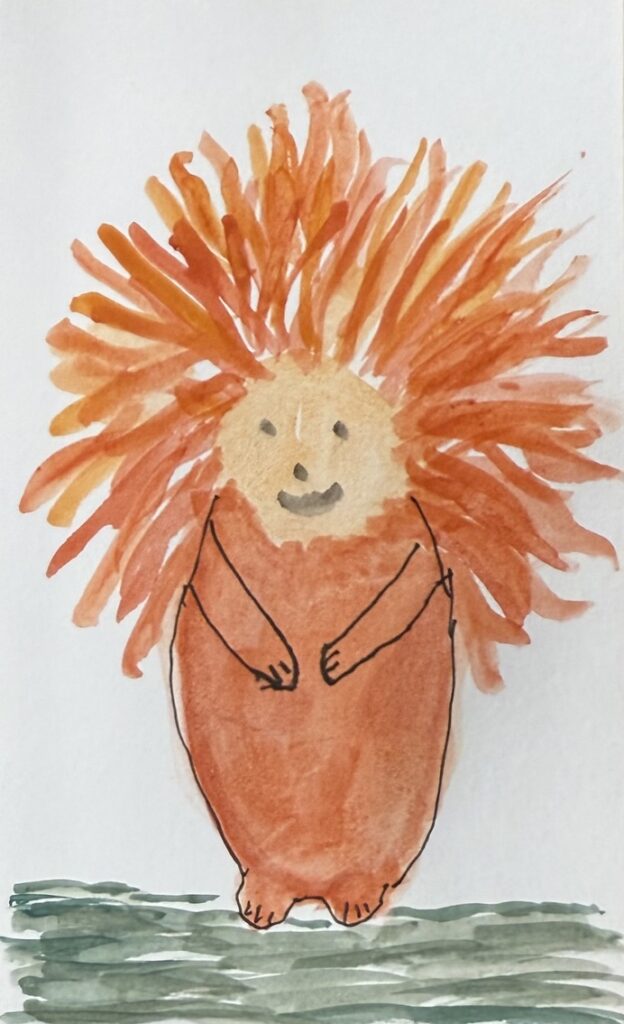 Day 39 – February 8, 2025 (Pen and Inktense pencils) Hedgehog Sheep?